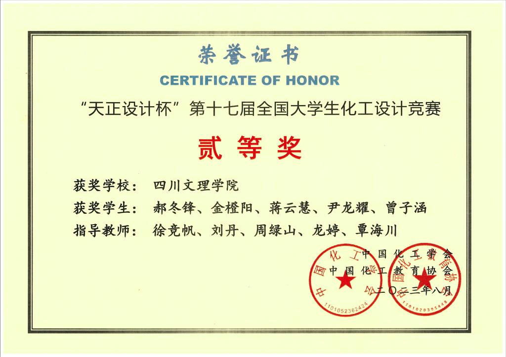 “天正设计杯”第十六届全国大学生化工设计竞赛 |