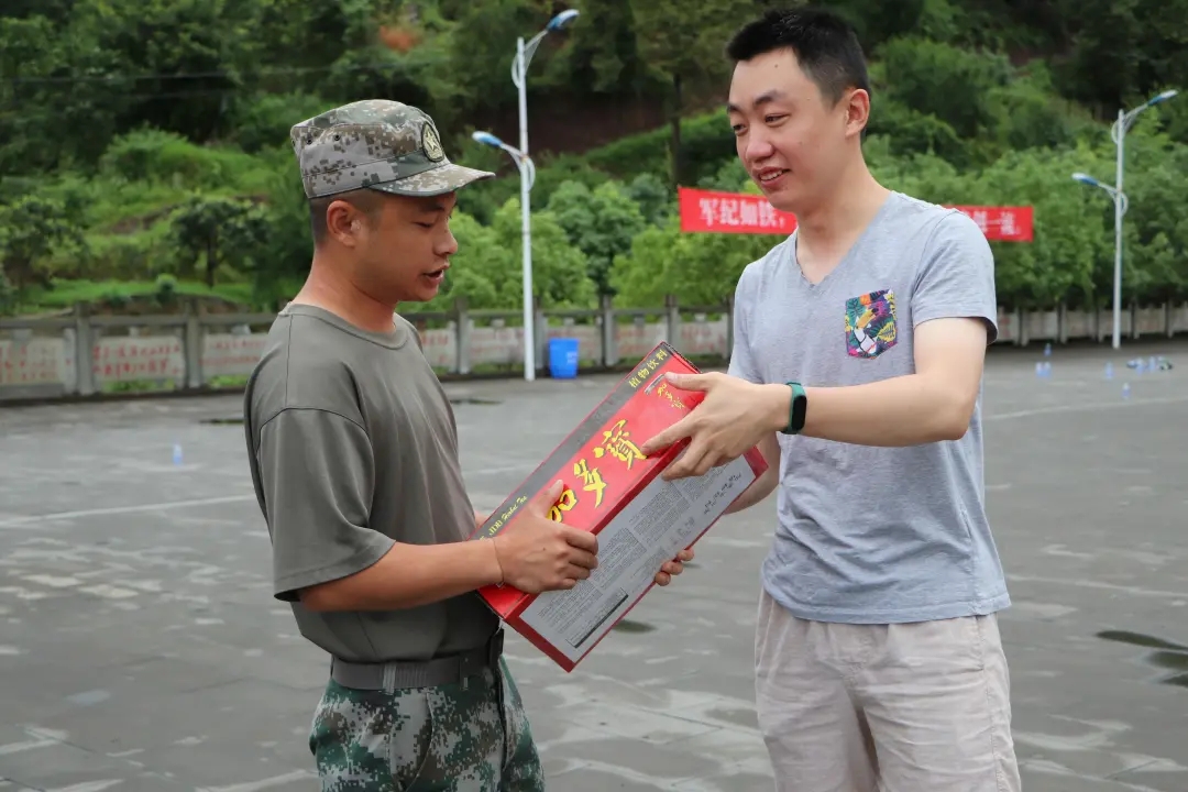 2021年6月18日早上9:30,taptap点点党总支副书记潘维、学工办副主任崔宝玉、辅导员张魏霞、周娅及学生代表赴达州国防基地慰问2019级军训学子。