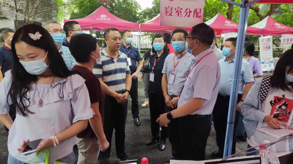 报道当天发放校园卡,新生手册,宿舍钥匙等物品及辅助新生完成个人信息核对等相关事宜。迎新工作进行得如火如荼,迎新现场也严格的按照流程进行。随着新同学陆续的到来。志愿者们首先帮助他们把行李寄存好,随后有条不紊的引领新生完成报到的所有程序,在志愿者的陪同下报道程序简单快速。院领导和老师对同学们关于政策、学习、生活等方面的疑问进行了详细解答,并予以鼓励,真正做到了:沟通零距离。对于省外报到新生,在进入校园第一时间就由志愿者带领前往校医院做二次核酸检测,坚决抓好防疫工作贯彻落实。当天下午刁永锋校长等校领导一行人莅临taptap点点视察指导迎新工作,并予以高度肯定。