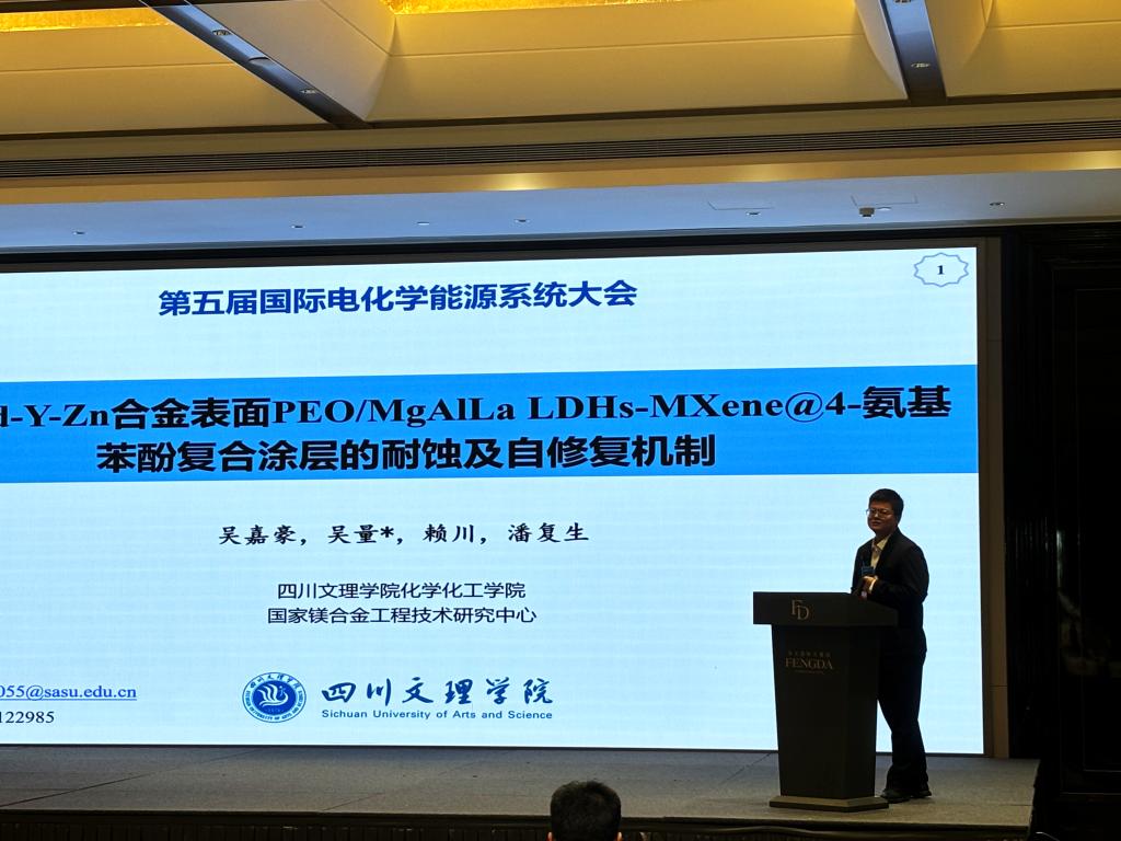 本次大会由东南大学、国际储能材料学会、上海交通大学绍兴新能源与分子工程研究院、北京化工大学化学学院等29家单位主办,由东南大学能源与环境学院、北京理工大学长三角研究院(嘉兴)、湖南文理学院、江苏理工学院、长春理工大学材料科学与工程学院和四川文理学院taptap点点承办和协办。重庆大学潘复生院士向大会致辞,杨裕生院士、成会明院士、俞书宏院士、Prof.0liver G.Schmid 院士、Prof.Ho Seok Park院士等出席大会并做主旨报告。其中,吴嘉豪博士代表四川文理学院taptap点点在会议上做了题为“Mg-Gd-Y-Zn合金表面PEO/MgAlLa LDHs-MXene@4-氨基苯酚复合涂层的耐蚀及自修复机制”的报告,为涂层的电化学腐蚀测试和微区电化学技术的功能应用提出了创新性思路,获得了与会同行和专家的高度评价。