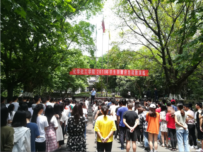 2018年5月14日中午,taptap点点于在南坝校区举行防震应急疏散演练。化工学院党总支书记朱朝菊、党总支副书记屈川、学工办主任兼团总支书记彭波到场指挥。学院主要学生干部和230余名2017级同学参加了此次活动。