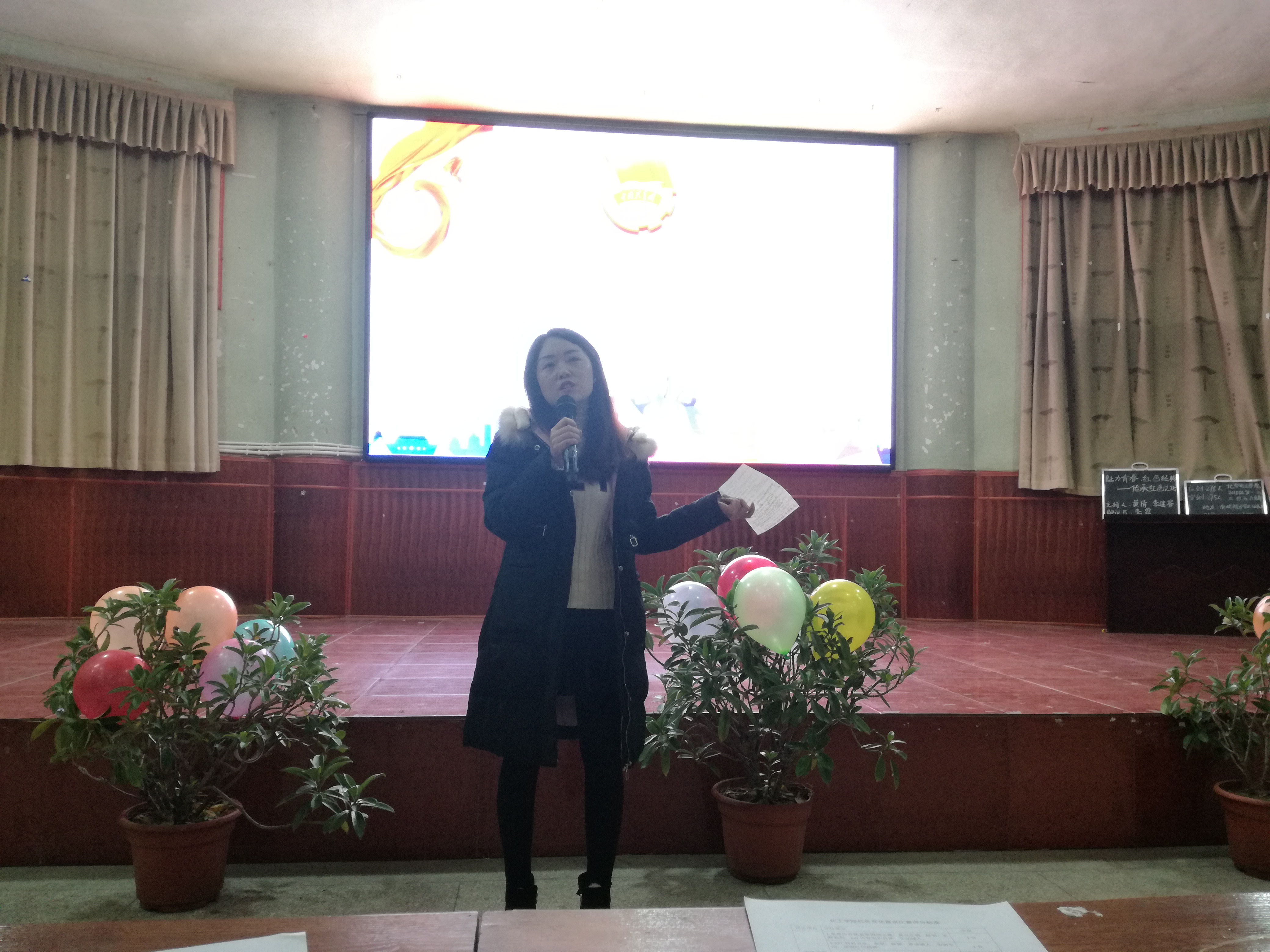 为促进同学们对红色文化的了解,鼓励同学们学习革命先辈的优良品质,2018年11月18日晚七点,taptap点点在南坝校区学术报告厅开展了以“魅力青春,红色经典”为题的团组织生活。辅导员张魏霞老师、刘丹老师及团总支第一副书记孙亨宇等部分团学干部出席了本次活动并担任评委,大一280余名同学参与了此次活动。