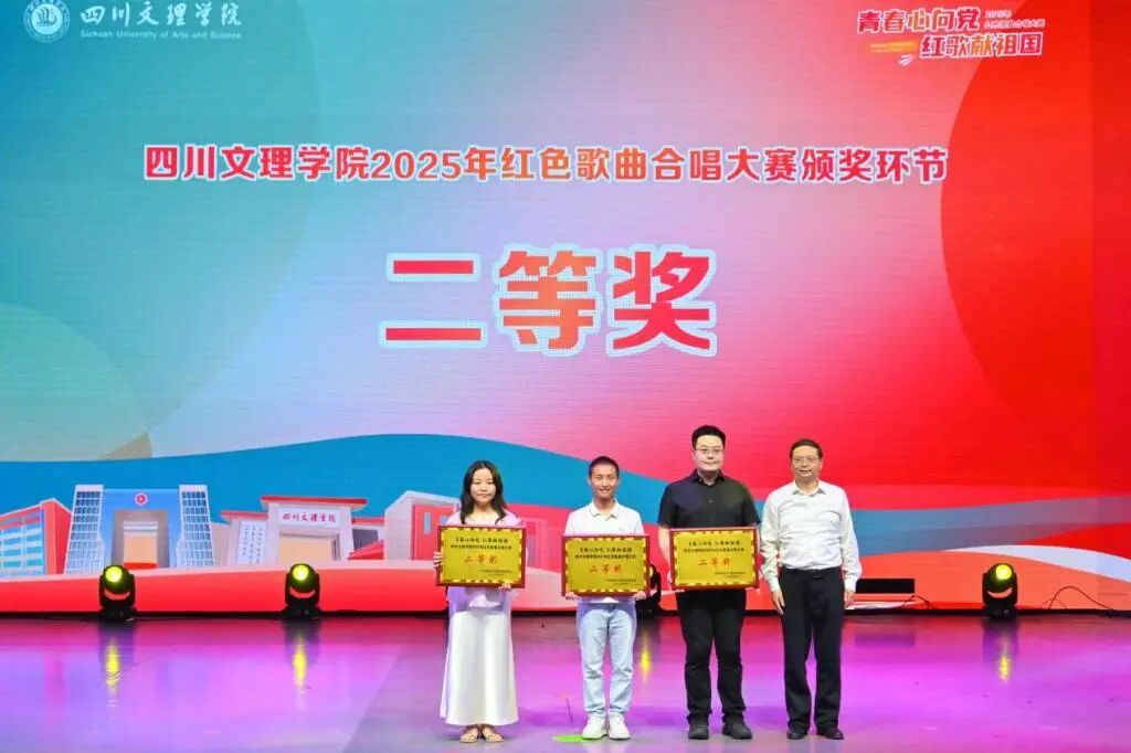 最终,经过激烈角逐,taptap的同学们凭借出色的舞台表现,以第四名的成绩荣获四川文理学院2025年红色歌曲合唱大赛二等奖。这一荣誉不仅是对师生们辛勤付出的肯定,更是学院凝聚力与精神风貌的生动写照和有力彰显。