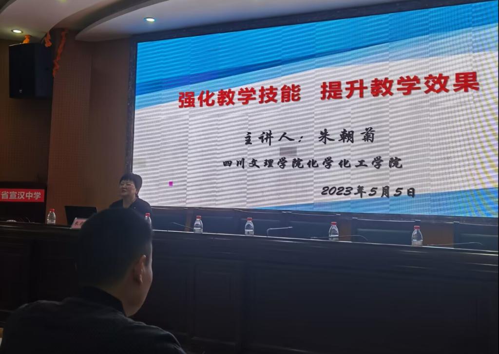 在全力推进化学师范专业认证背景下,为加强与教育实习基地的交流与合作。2023年5月5日,四川文理学院taptap点点正处级组织员朱朝菊副教授受渠县中学、宣汉中学邀请,在宣汉中学学术报告厅为两校化学专业相关教师做了一场题为“强化教学技能 提升教学效果”的主题讲座。宣汉中学党委委员、副校长袁勇,达州市周雷化学名师工作室与四川省曾朝霞化学名师工作室(达州站)的全体成员、taptap点点副院长周绿山及教师代表何俊波、李颖参加讲座。讲座由宣汉中学教室主任任本德主持。