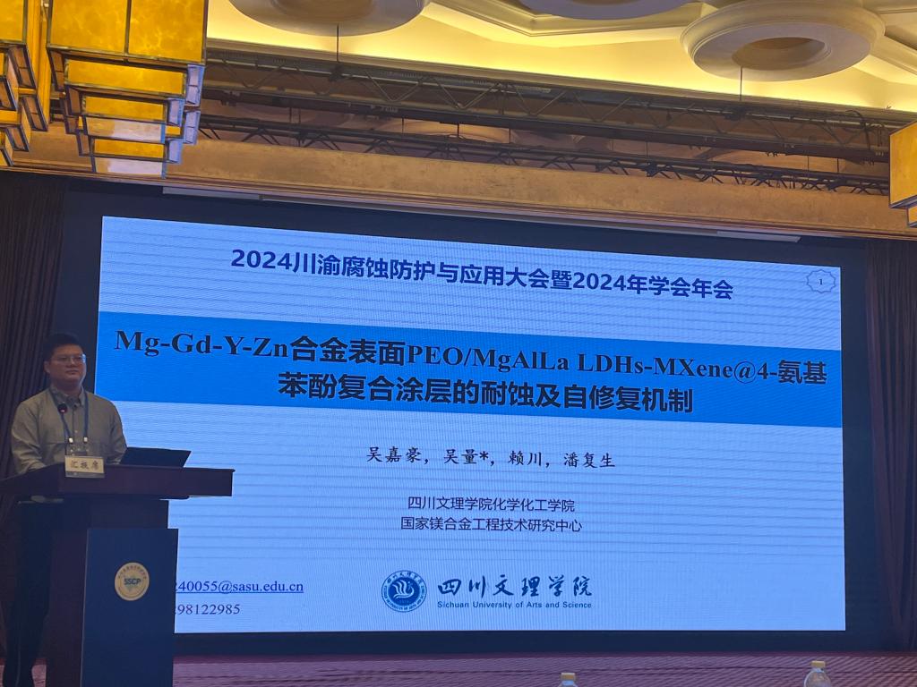 会议由四川省腐蚀与防护学会和重庆市腐蚀与防护学会主办,四川轻化工大学、中石油西南油气田分公司天然气研究院等8家单位联合承办。会议涉及腐蚀及控制技术的国内外最新进展、缓蚀剂、耐蚀材料、涂镀层、防锈技术、表面技术、电化学保护、工程防腐蚀、阴极保护、高温腐蚀与防护、海洋新材料及防护技术、医用材料腐蚀与防护、自然环境(大气//土壤)腐蚀、腐蚀防护相关技术标准化等方面内容,吸引了川渝地区120余名腐蚀防护领域的行业专家、高校师生、企事业单位领导及代表出席了会议,共计学术报告42场。其中,吴嘉豪博士代表四川文理学院taptap点点在会议上做了题为Mg-Gd-Y-Zn合金表面PEO/MgAlLa LDHs-MXene@4-氨基苯酚复合涂层的耐蚀及自修复机制”的报告,为高强高韧镁合金易腐蚀和表面涂层损坏而加速腐蚀的问题,提出了一种创新的解决方案,获得了与会同行的高度评价。吴嘉豪博士通过参与此次会议,对腐蚀与防护的前沿动态有了更深入的理解,并与来自其他高校和企业的专家学者进行了广泛交流,为吴博士的个人专业发展提供了重要的信息资源和思维启发,同时也将为taptap点点功能材料专业的教育教学改革与创新发展,以及高素质应用型复合型人才的培养,提供有力的参考和支持。