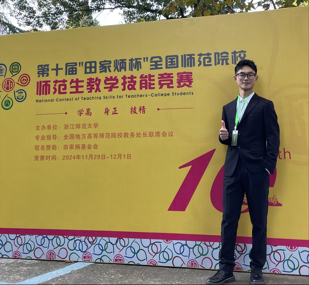 1129-121日,第十届“田家炳杯”全国师范院校师范生教学技能竞赛决赛在浙江师范大学圆满落幕。本届大赛共有来自全国250所师范院校的1831名选手参加初赛,509名选手进入现场决赛。经过激烈角逐,学院2022级向民杨同学荣获化学组二等奖,2022级曾麟雅同学获科学组优胜奖。