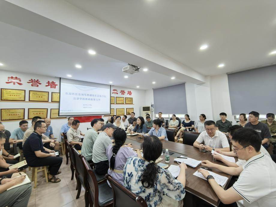 会议伊始,学校科技处副处长刘笃晋围绕学校新修订的系列科技文件作专题讲解。刘笃晋从文件修订背景、核心条款及落实要求三方面展开,重点解读了科研项目激励机制、成果转化支持政策、平台建设资源倾斜等内容。他结合taptap点点学科特色指出,新文件出台旨在为教师科研“赋能松绑”,鼓励大家聚焦国家战略需求与区域产业瓶颈,产出更多标志性成果。
