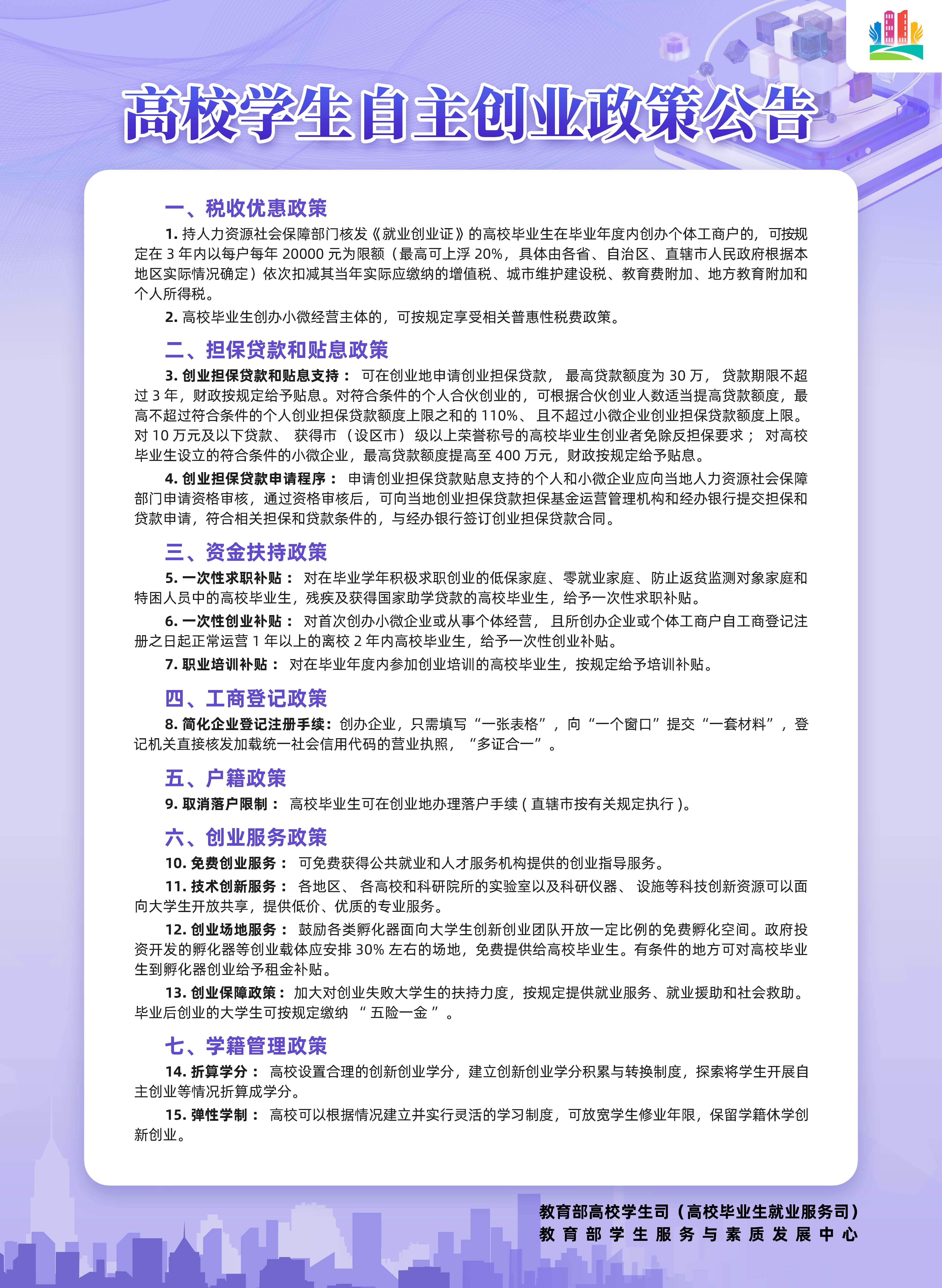 转发“ 高校学生自主创业政策公告”