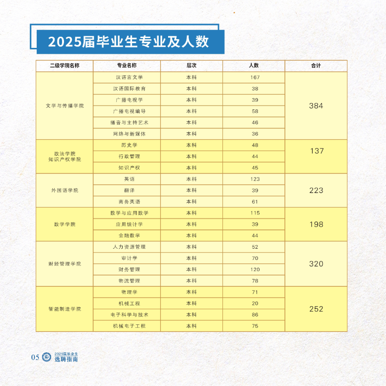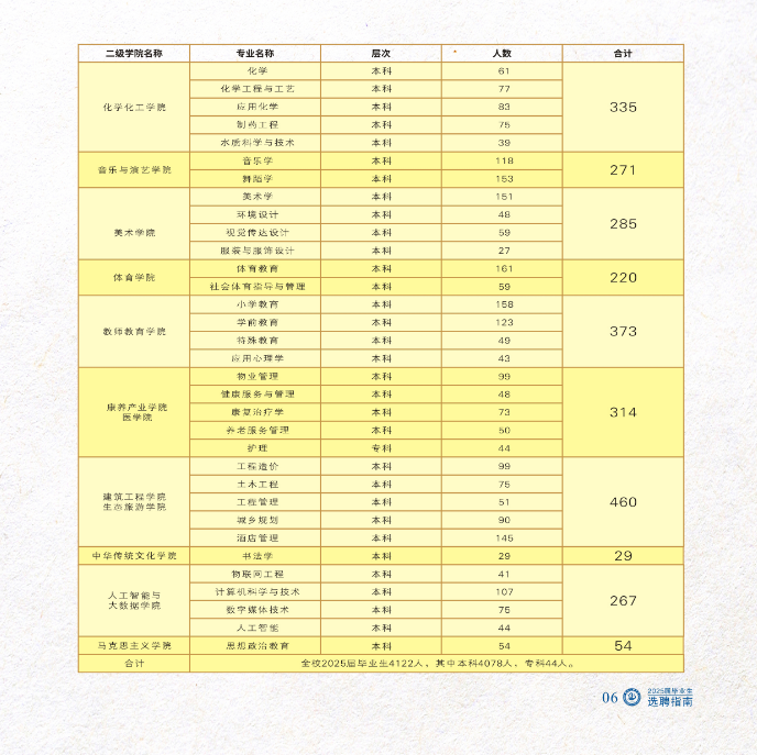 四川文理学院2025届毕业生专业及人数列表