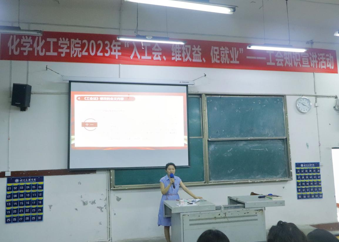 在同学们的积极互动下,活动取得了良好效果,并得到了同学们的一致好评。化学工程与工艺专业的张雪玲同学说:“这次工会知识宣讲活动让我了解了工会的相关知识,可以通过工会来维护自己的合法权益,对我们在未来就业中遇到相关问题时,如何维护自己的劳动权利,履行自己的劳动义务具有很大的帮助。”